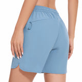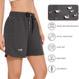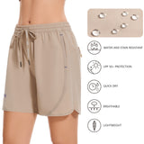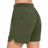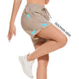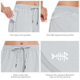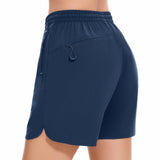 Our women's 5 athletic shorts are made from a lightweight, quick-dry fabric with UPF 50+ sun protection and water-resistant properties, embody practicality and style. The quick dry shorts women shield you from the sun and keep you dry all day. The adjustable elastic waistband with a drawstring caters to various body types, and the dolphin hem allows for unrestricted movement. With spliced webbing detailing, two deep front pockets, and one zippered rear pocket, these shorts offer both style and utility. Perfect for fishing, outdoor activities, athletic sports, or casual wear, they ensure comfort and ease in any setting.